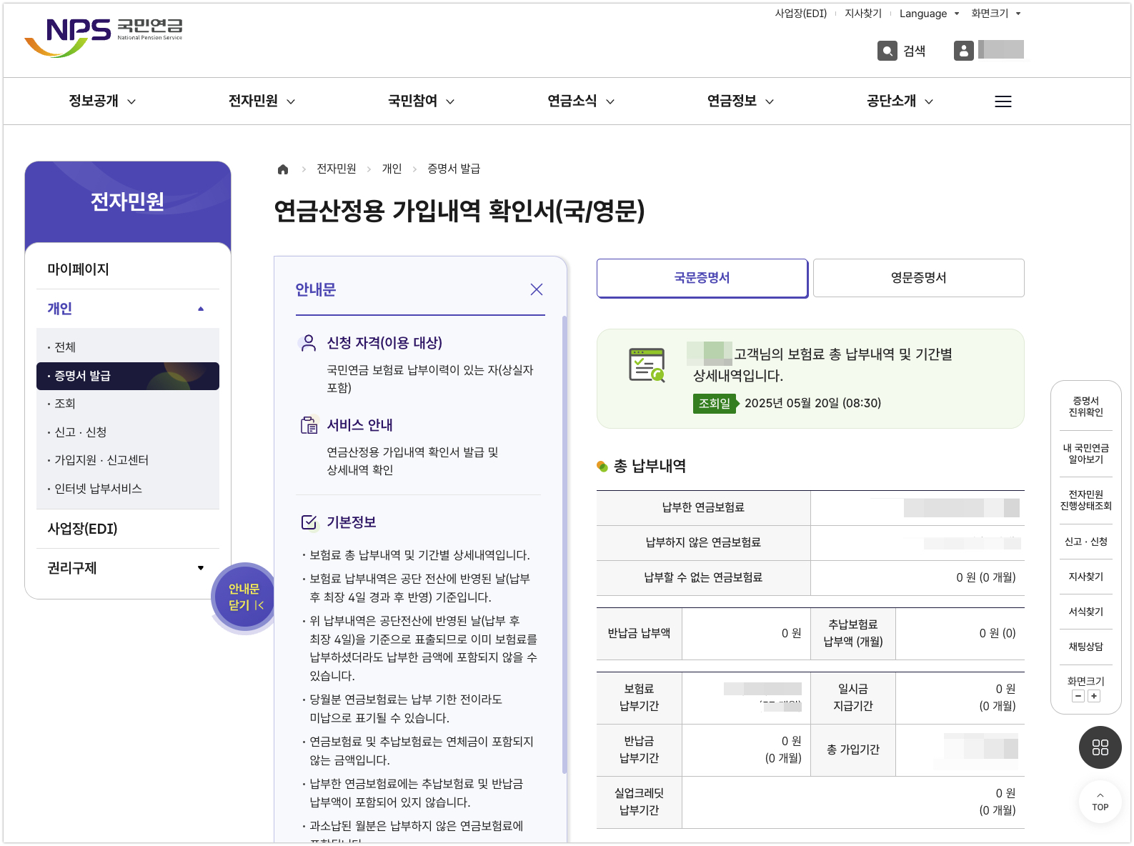 👉 이 서류는 국민연금공단에서 발급하며, 본인 인증만 하면 온라인으로 즉시 출력 가능합니다.