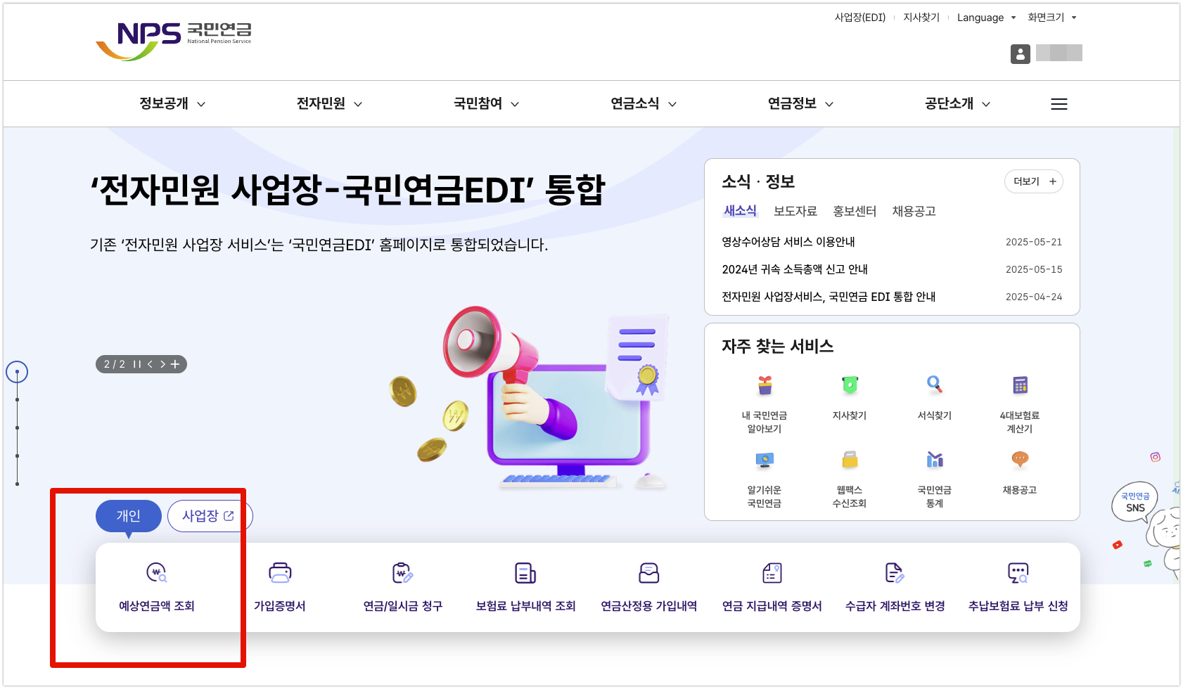 국민연금 예상수령액 확인하기 메인이미지