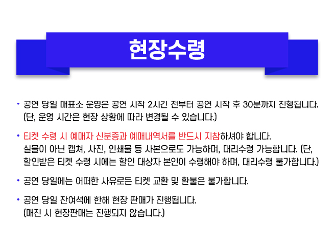 A. 현장 구매는 좌석이 남아있는 경우에만 가능하며, 사전 예매를 강력 추천드립니다.