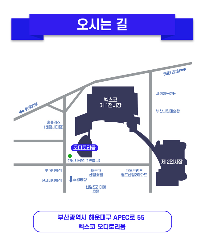 공연 장소인 벡스코 오디토리움은 해운대구에 위치해 대중교통으로 접근이 용이합니다.