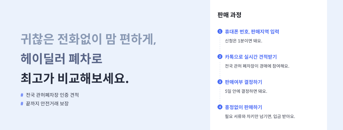 헤이딜러폐차 카카오톡 간편 조회 + 말소증 24시간 내 발급 부품가 포함 최고가 제시