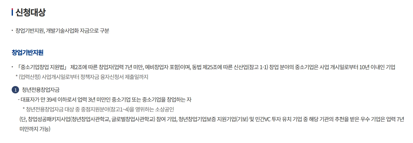 | 💡 업종 | 중소기업창업 지원법 제2조에 해당하는 업종 (일반 제조/지식서비스 등) |