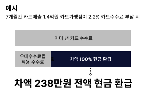 이처럼 사업자가 기존에 부담한 카드 수수료보다 낮은 우대 수수료율이 적용될 경우, 그 차액을 현금으로 돌려받을 수 있습니다.