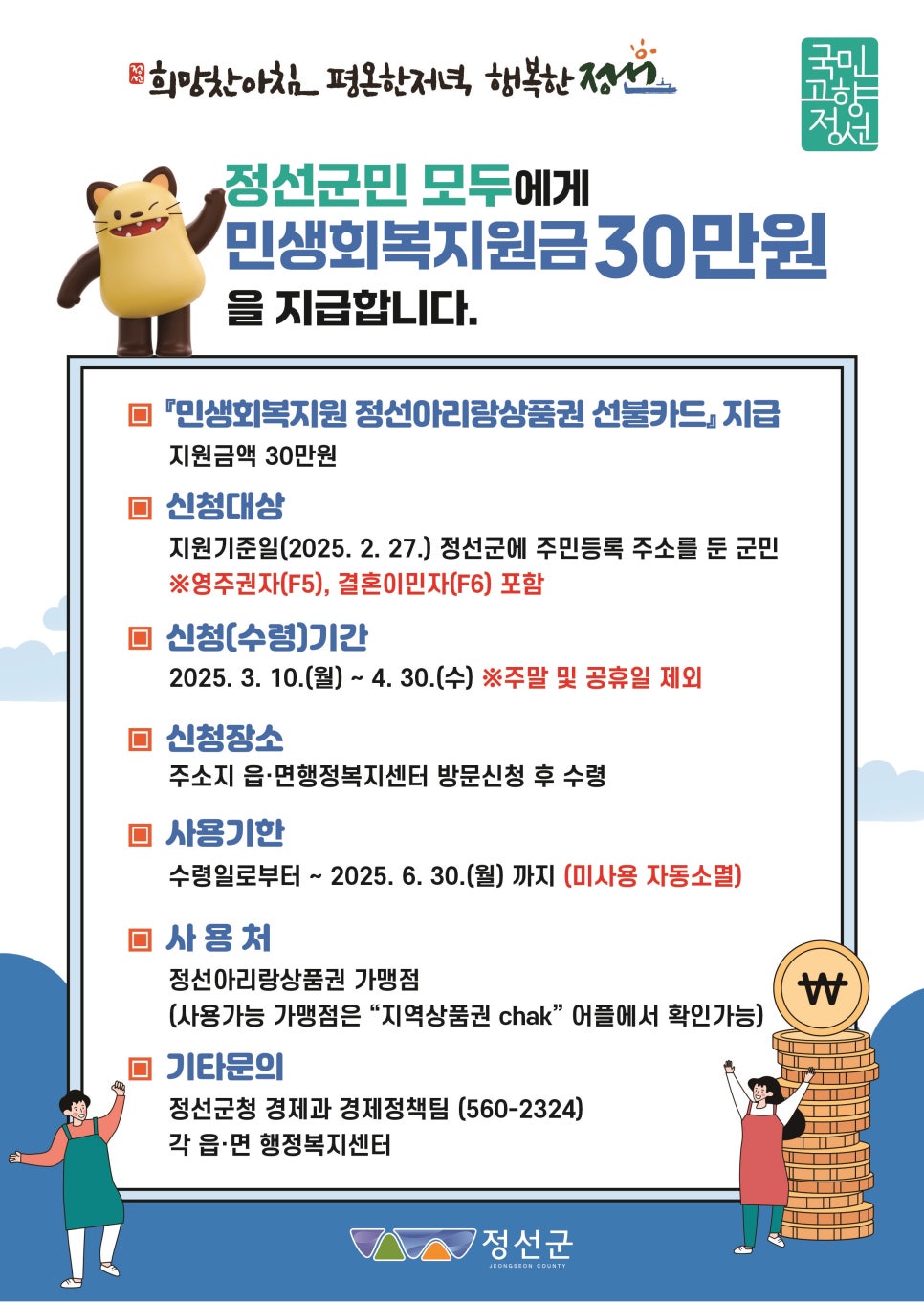 2025 정선군 민생지원금 신청방법 (대상, 금액 총정리)
